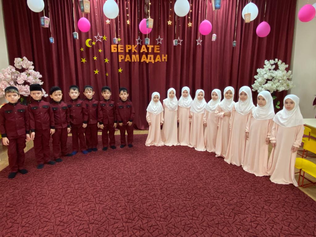 12.04.202312.04.2023г. в детском саду «Иман» проведено мероприятие, приуроченное Священному месяцу Рамадан. На мероприятии дети рассказывали хадисы про месяц Рамадан. Также дети читали нашид про Пророка Мухаммада (да благословит Его Аллах и приветствует), отвечали на вопросы, показали сценку, читали суры из Корана